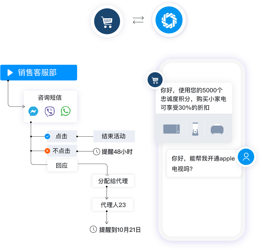 在新品上市和店庆活动等促销活动中,通过短信向客户透传新品信息、优惠打折信息,刺激客户的购买欲。